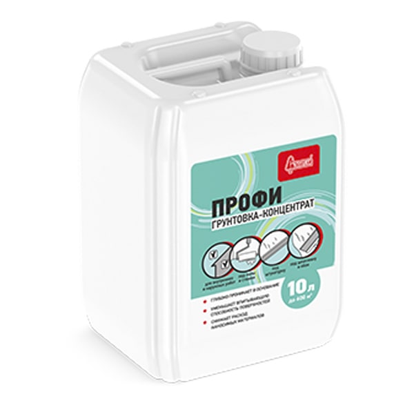 Концентрированный состав, предназначенный для профессионального применения. Разбавляется водой в соотношении от 1:1 до 1:5 в зависимости от впитывающей способности поверхности и типа проводимых отделочных работ. Предназначена для укрепления старых, рыхлых, отмеливающих оснований, обеспечивает равномерное схватывание раствора гипсовых и цементных смесей, увеличивает прочность сцепления наносимых материалов с основанием.