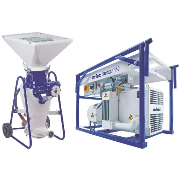 Hurrican 140 позволит исключить длительную разгрузку, транспортировку, открытие и заполнение мешочной тары, поскольку материалы для растворов подаются непосредственно к агрегатам по закрытой системе. Производительность можно существенно увеличить за счет приобретения компрессорной установки, при этом тяжелые смеси можно транспортировать на значительные расстояния.